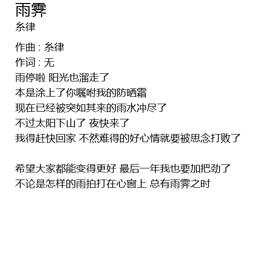 | 不论是怎样的雨拍打在心窗上 总有雨霁之时 |