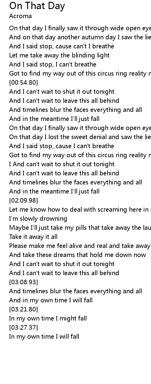 | [03:15.18] | And in my own time I will fall |