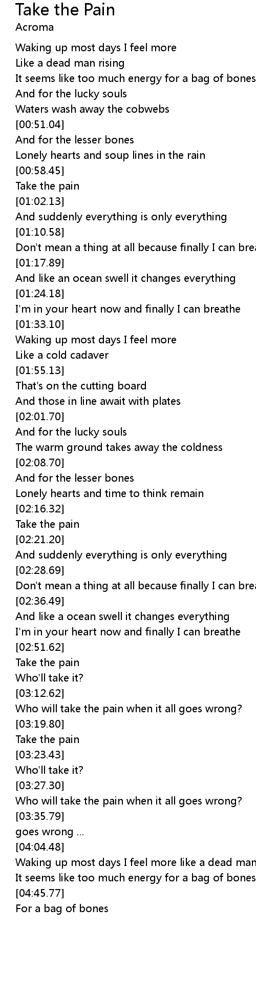 | [03:14.62] | Who will take the pain when it all goes wrong? |