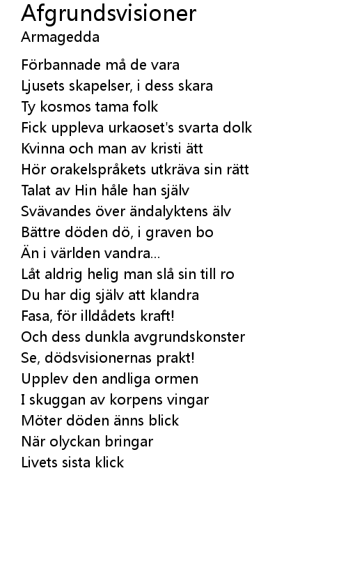 | Song | Afgrundsvisioner |