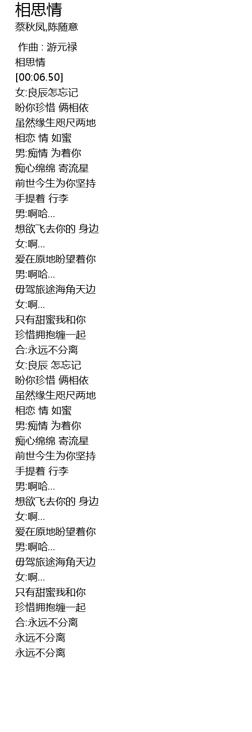 | [00:30.48] | 盼你珍惜 俩相依 |