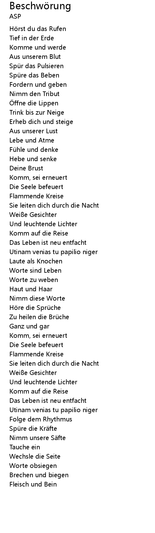 | Song | Beschwörung |