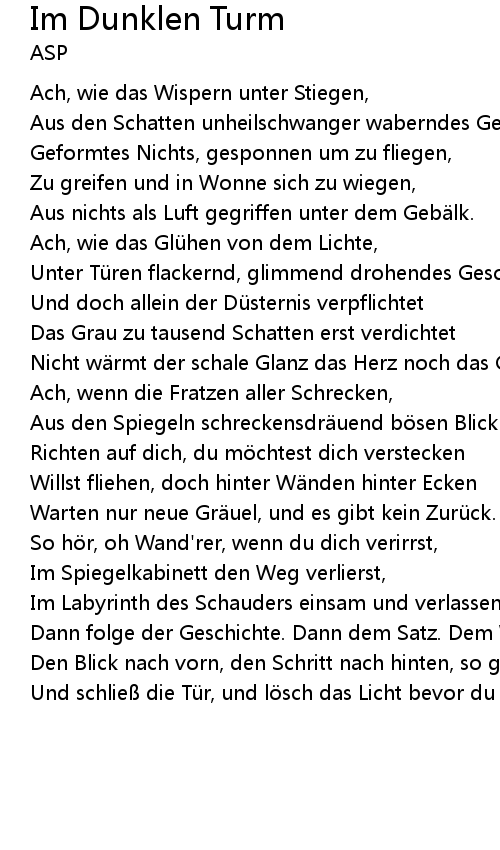 | Willst fliehen, doch hinter W nden hinter Ecken | |