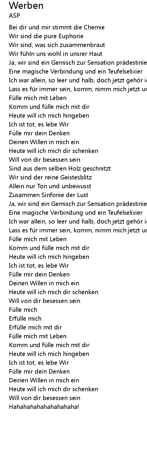 | Ich war allein, so leer und halb, doch jetzt geh r ich dir | |