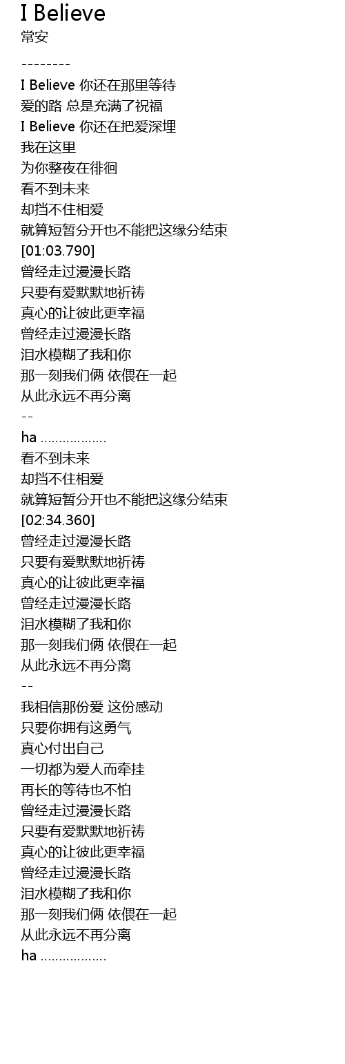 | [00:34.290] | I Believe 你还在把爱深埋 |