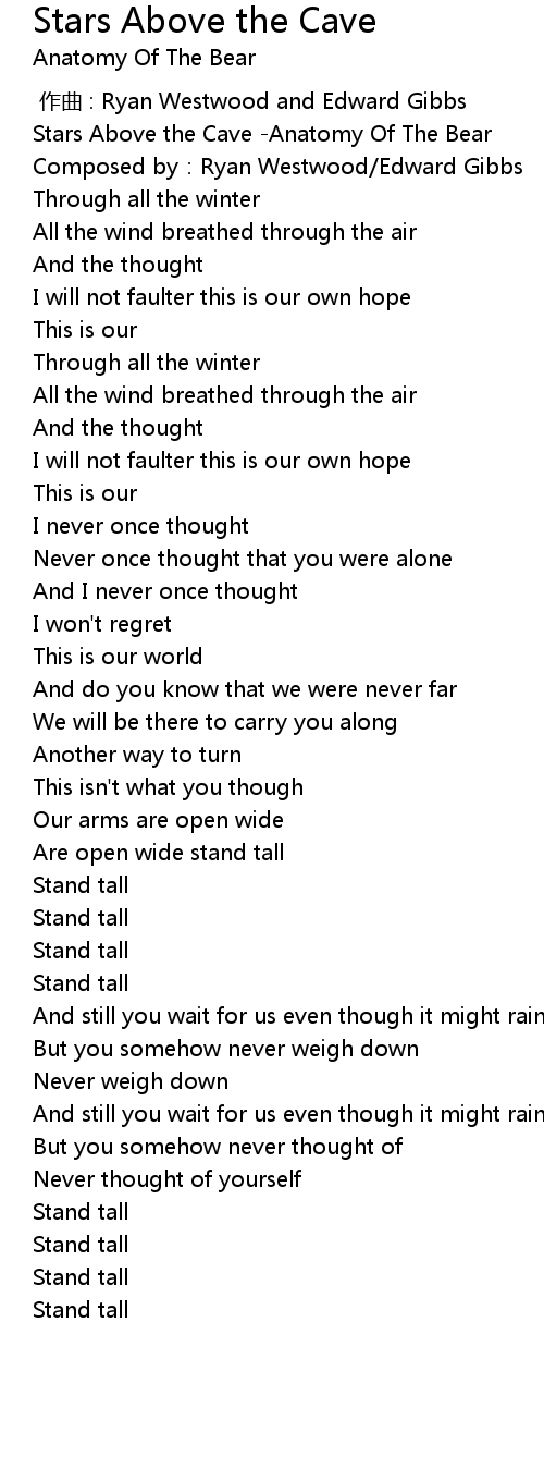 | [00:00.398] | Stars Above the Cave Anatomy Of The Bear |