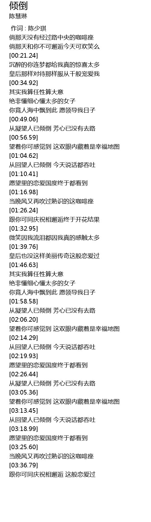 | [01:40.58] | 皇后也没这样美丽传奇这般恋爱过 |