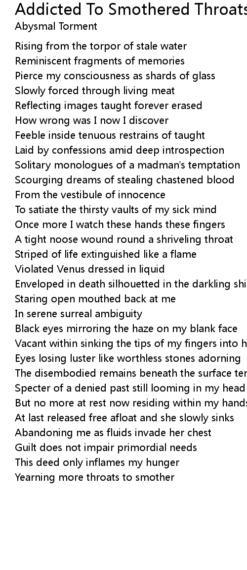 Yearning more throats to smother |