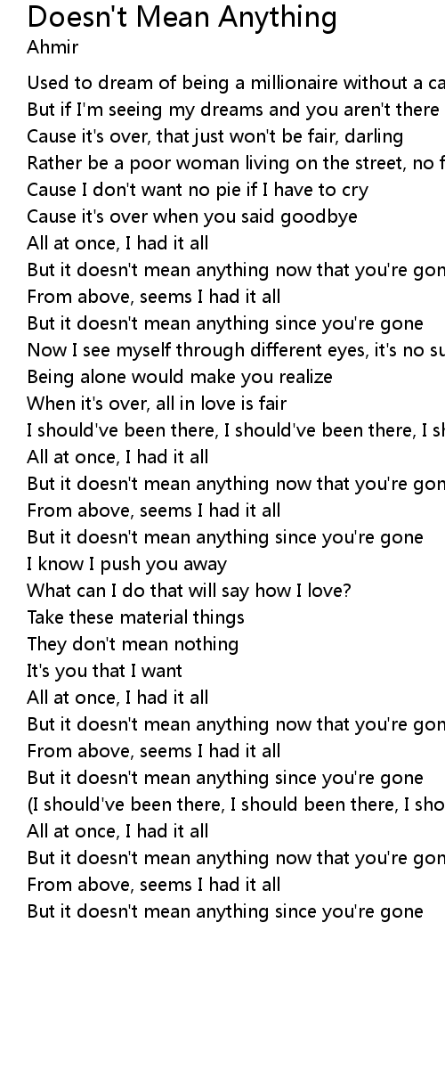 But it doesn't mean anything now that you're gone |