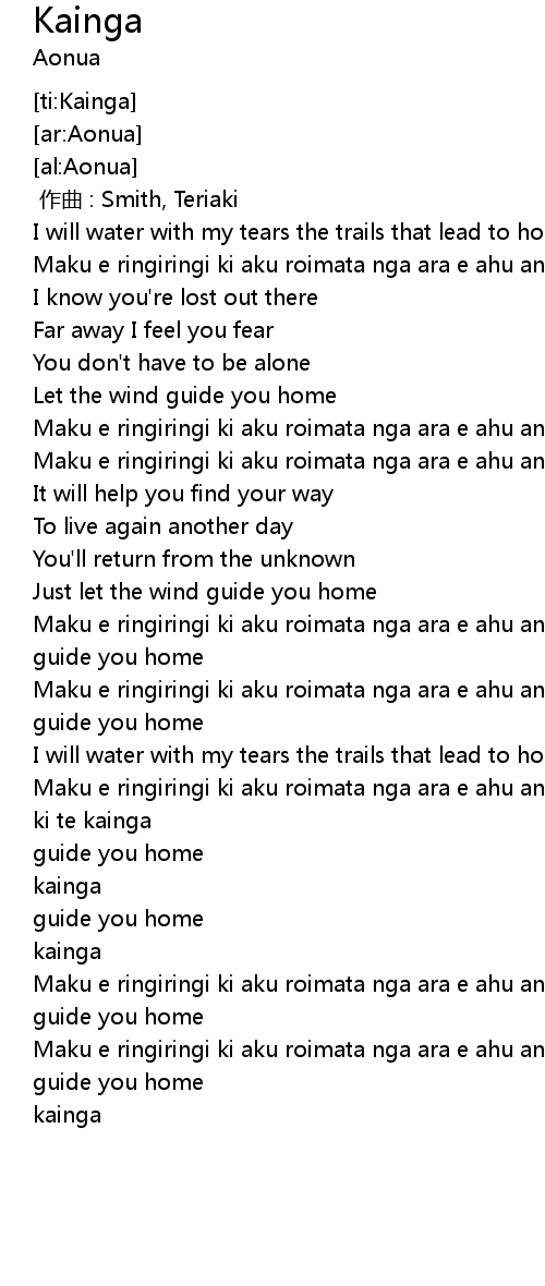 | [03:21.67] | Maku e ringiringi ki aku roimata nga ara e ahu ana ki te kainga |