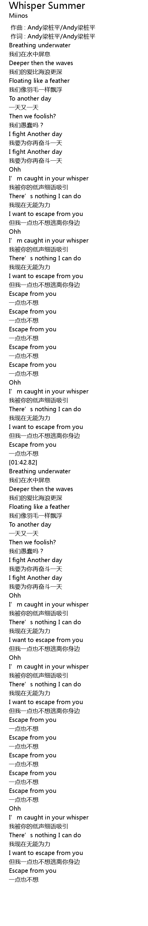 | [00:01.000] | zuò cí : Andy liáng zhuāng píng Andy liáng zhuāng píng |