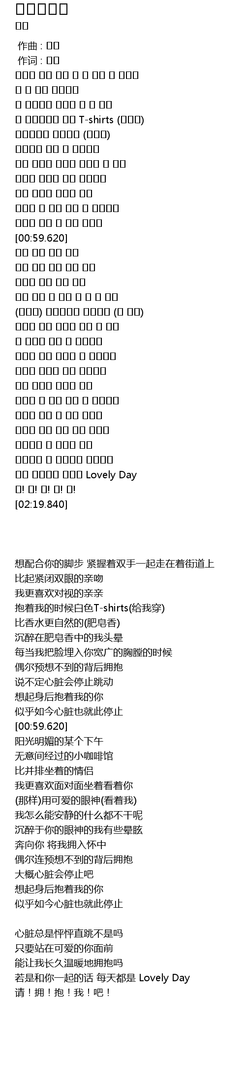 | [02:00.740] | 너와 함께라면 매일이 Lovely Day |