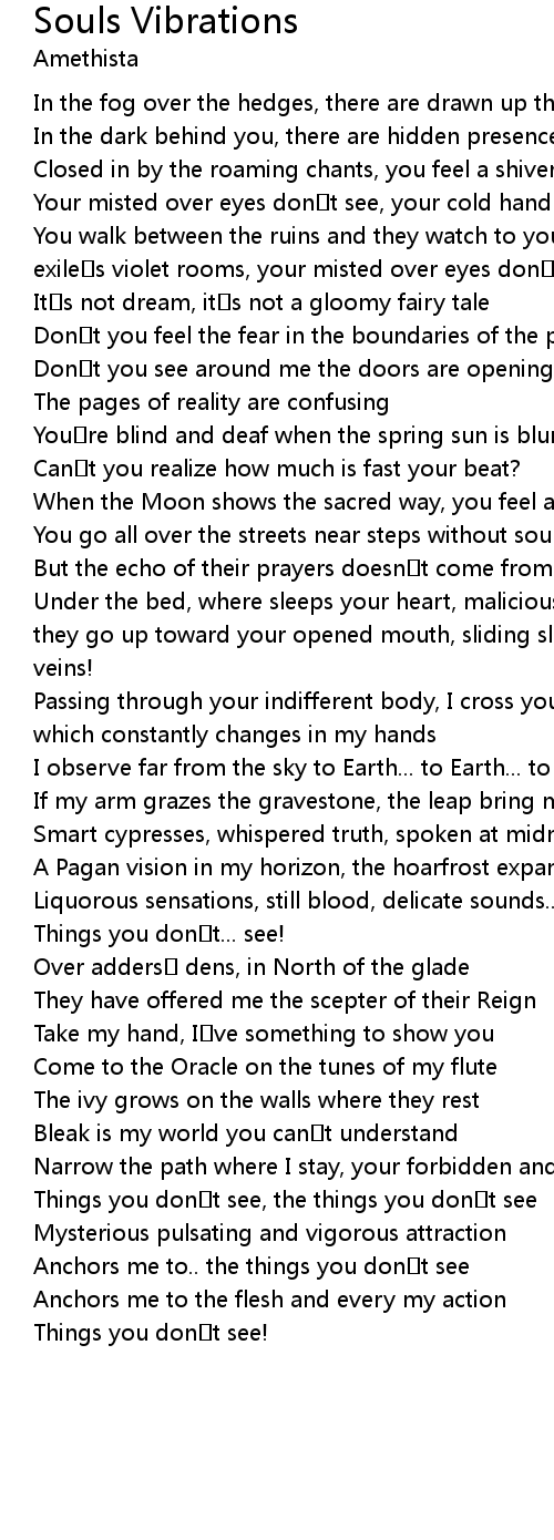 | You walk between the ruins and they watch to you, but you can t reach exile s violet rooms, your misted over eyes don t see | |