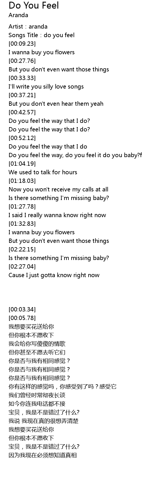 | [00:57.56] | Do you feel the way, do you feel it do you baby? feel it |