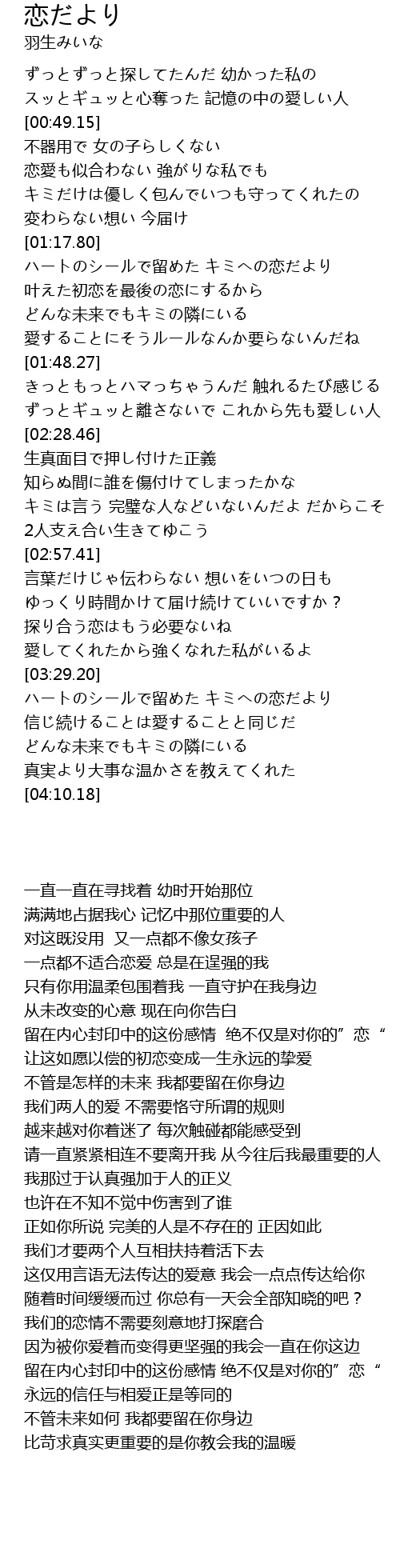 | [03:41.57] | ハートのシールで留めた キミへの恋だより |