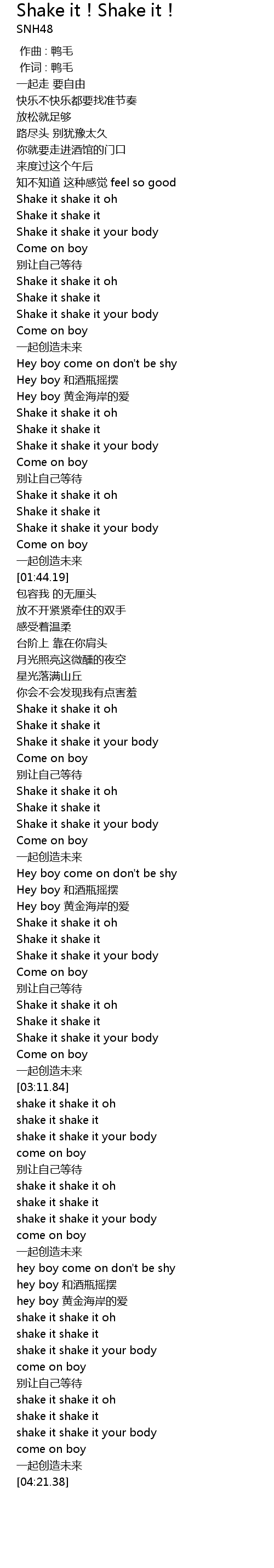 | [03:45.01] | shake it shake it your body |