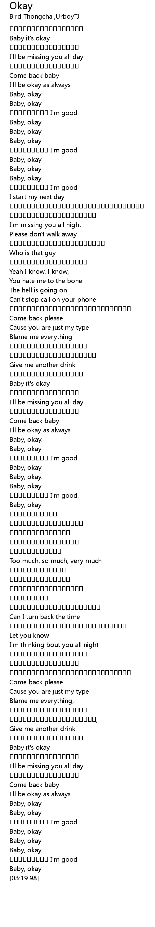 | [00:31.70] | ไม่เป็นไร I'm good |