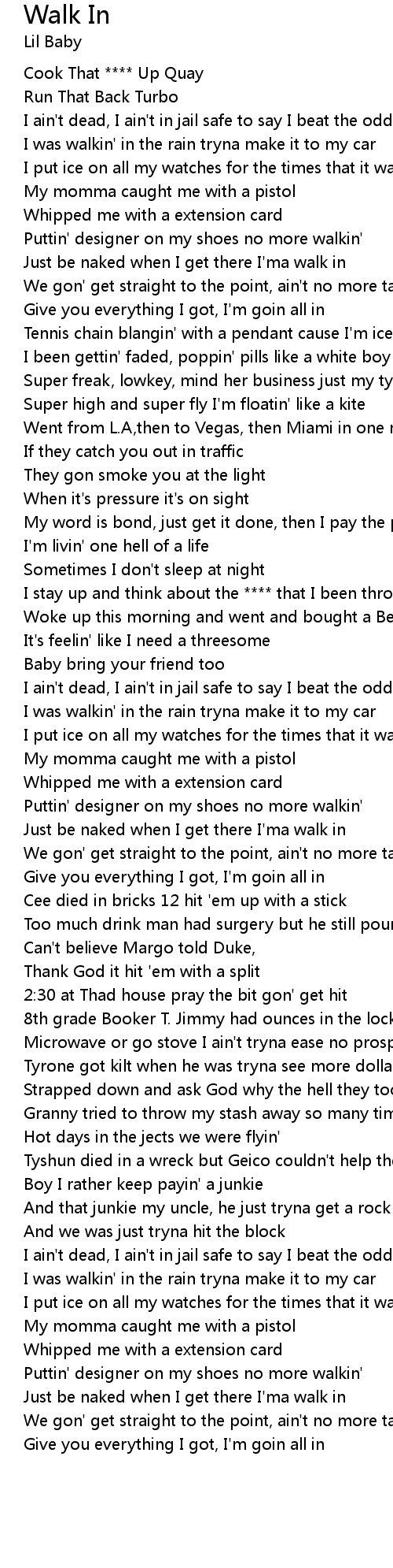 | [01:18.74] | I was walkin' in the rain tryna make it to my car |