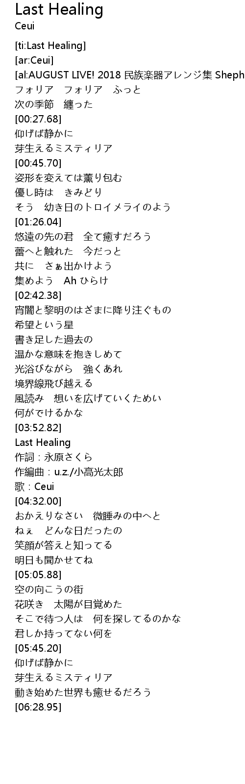 | [03:53.00] | Last Healing |