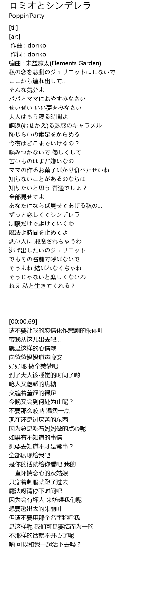 | [00:00.69] | 编曲 : 末益涼太(Elements Garden) |