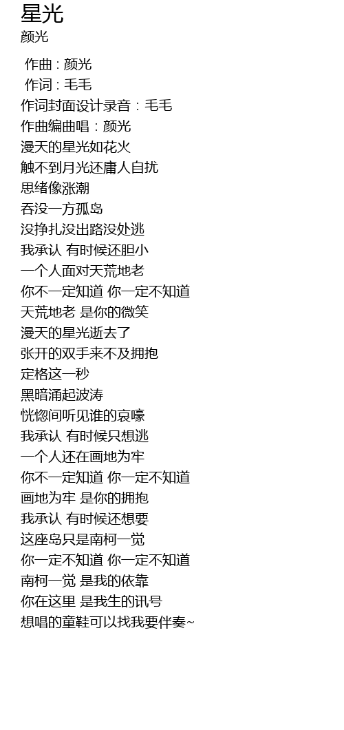 | [00:03.745] | 作曲编曲唱:颜光 |