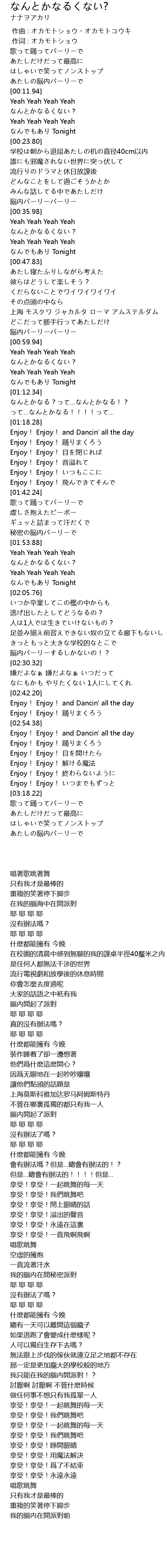 | [00:15.41] | なんとかなるくない? |