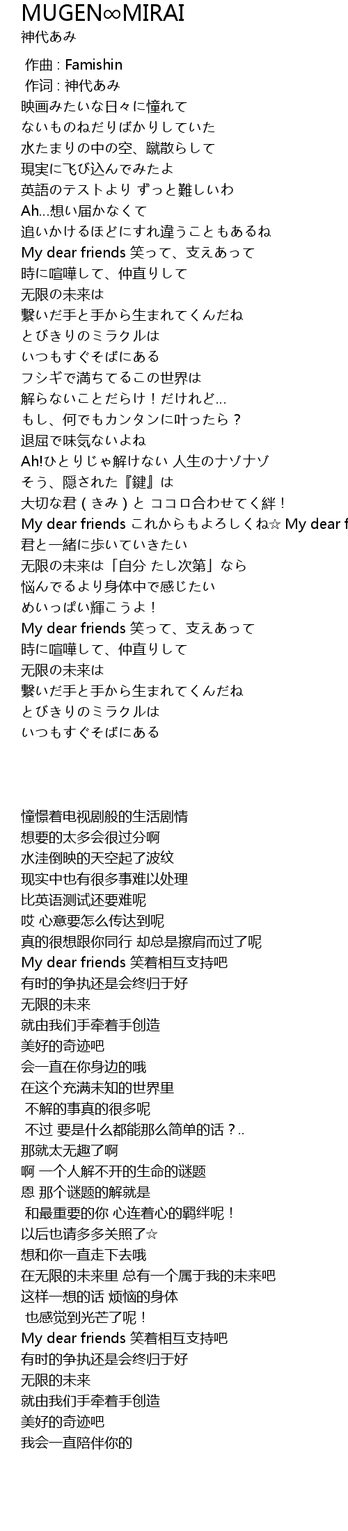 | [03:59.340] | My dear friends 笑って、支えあって |