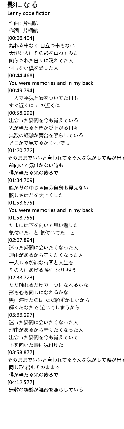 | [04:04.211] | 同じ形 君もそのままで |