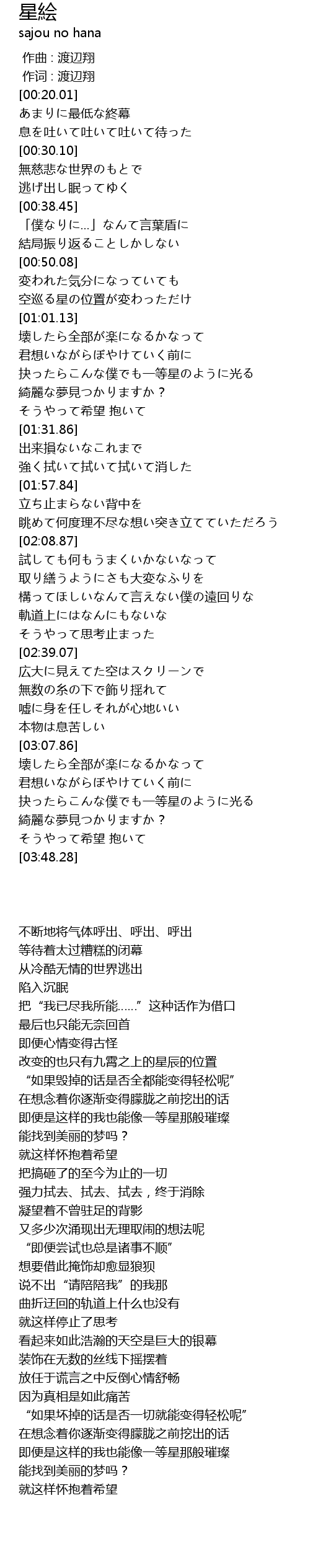 | [03:29.81] | 抉ったらこんな僕でも一等星のように光る |
