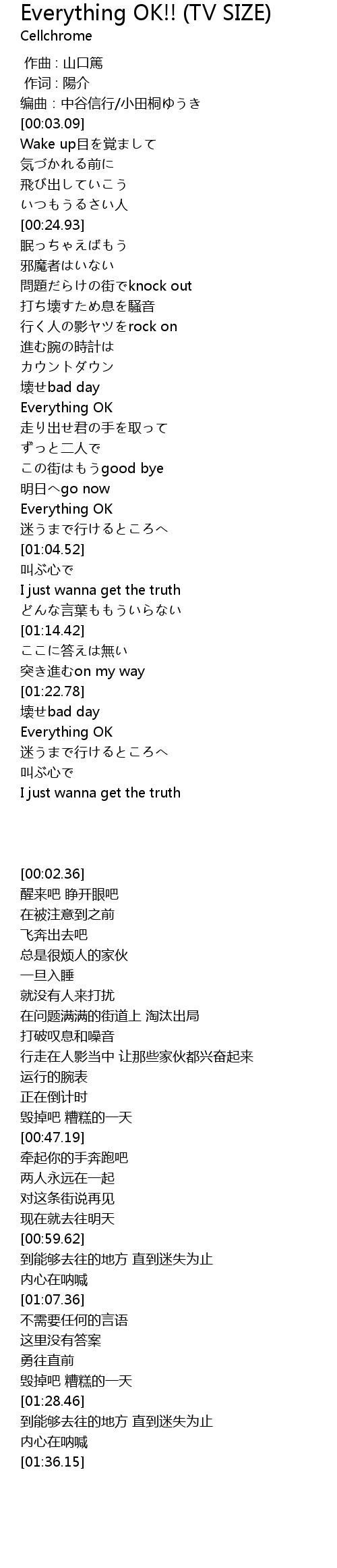 | [00:46.02] | 壊せbad day |