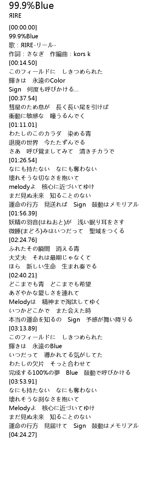 | [00:06.50] | 歌:ЯIRE-リール- |