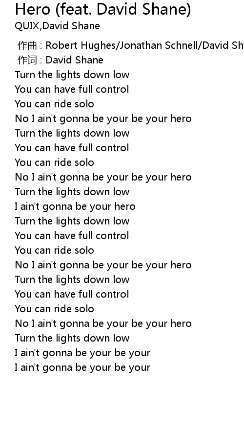 | [00:43.02] | No I ain't gonna be your be your hero |