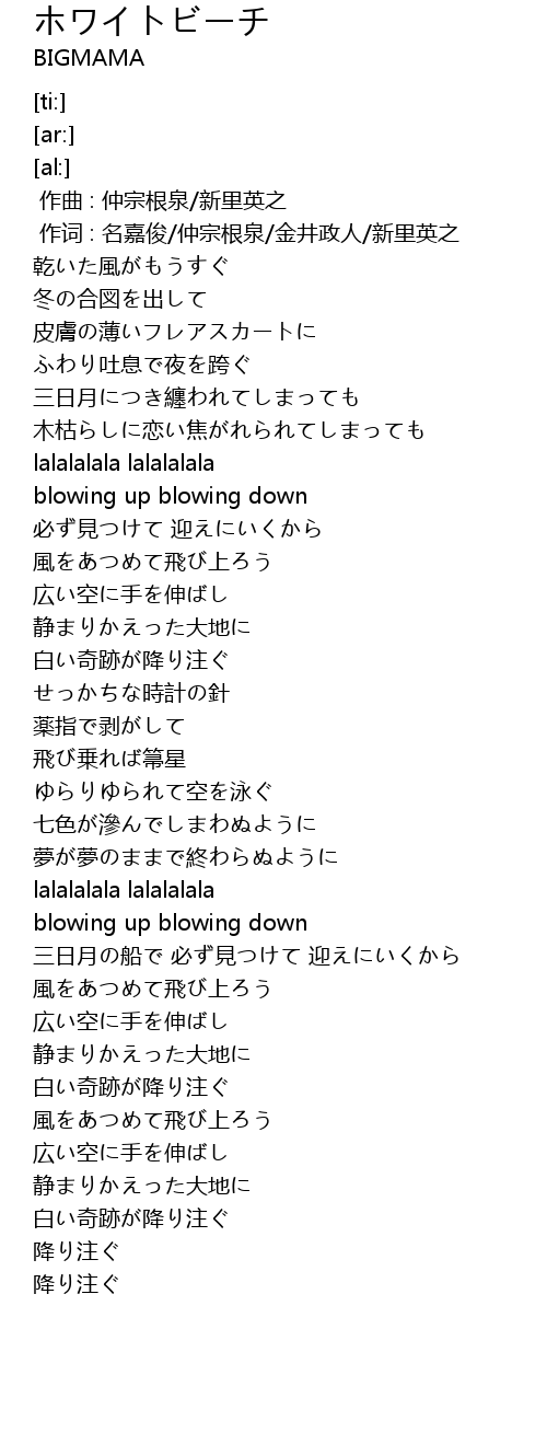 | [00:00.000] | 作曲 : 仲宗根泉/新里英之 |