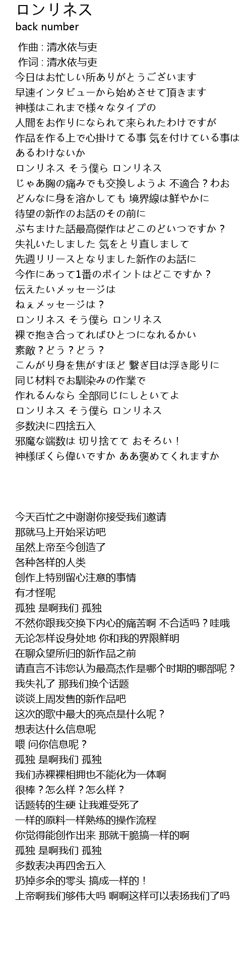 | [03:51.850] | ロンリネス そう僕ら ロンリネス |