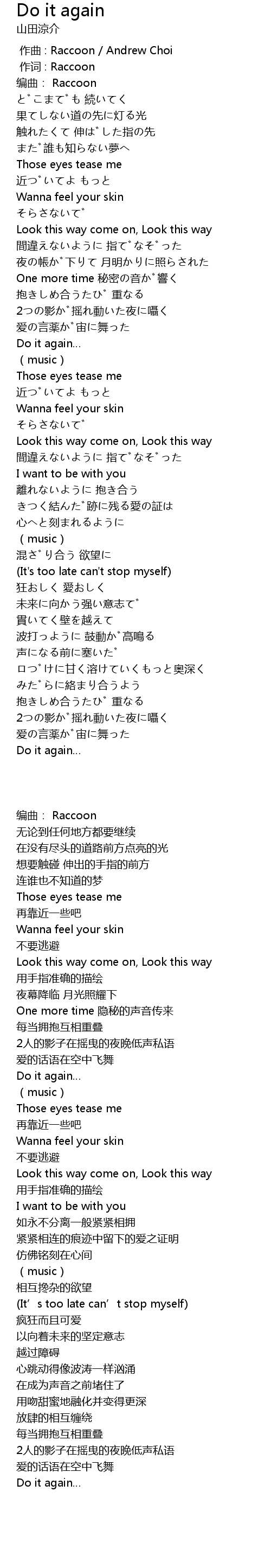 | [00:00.000] | zuò qǔ : Raccoon Andrew Choi |