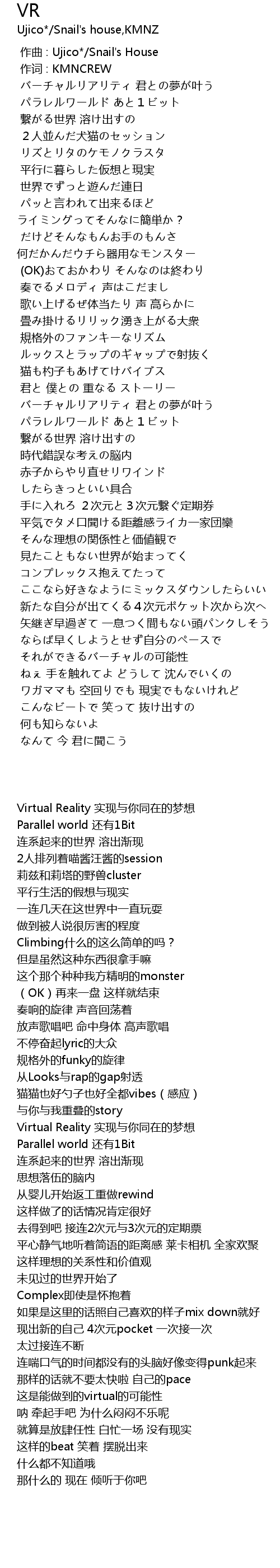 | [00:01.611] | バーチャルリアリティ 君との夢が叶う |