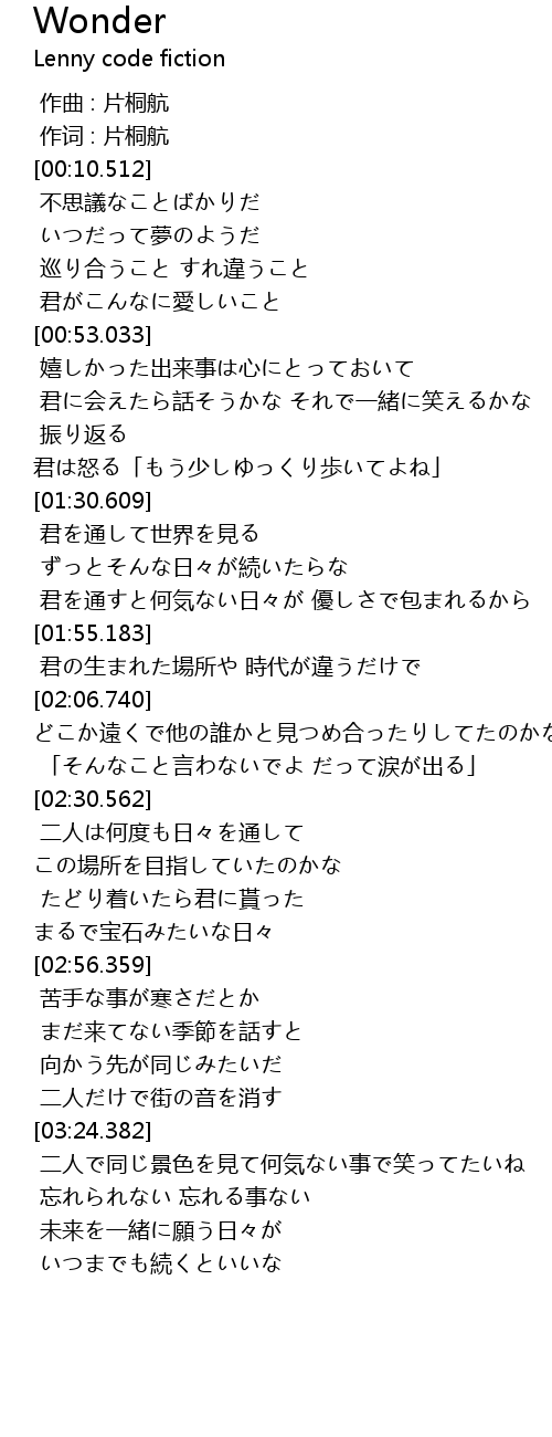 | [01:42.811] | 君を通すと何気ない日々が 優しさで包まれるから |