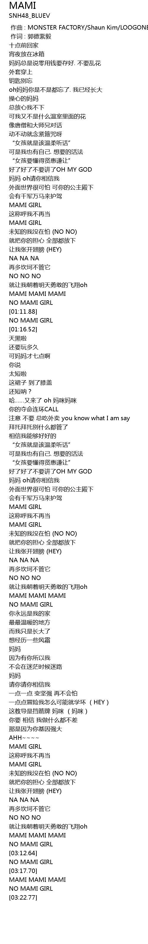 | [00:40.93] | mā mā oh qǐng nǐ xiāng xìn wǒ |