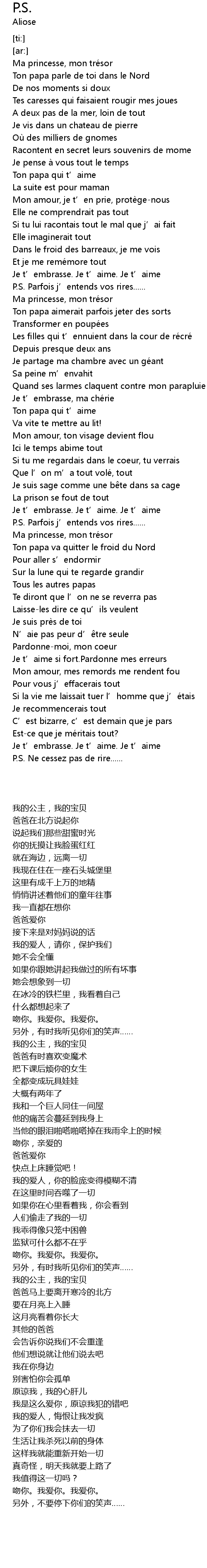 | [01:20.87] | Je t' embrasse. Je t' aime. Je t' aime |