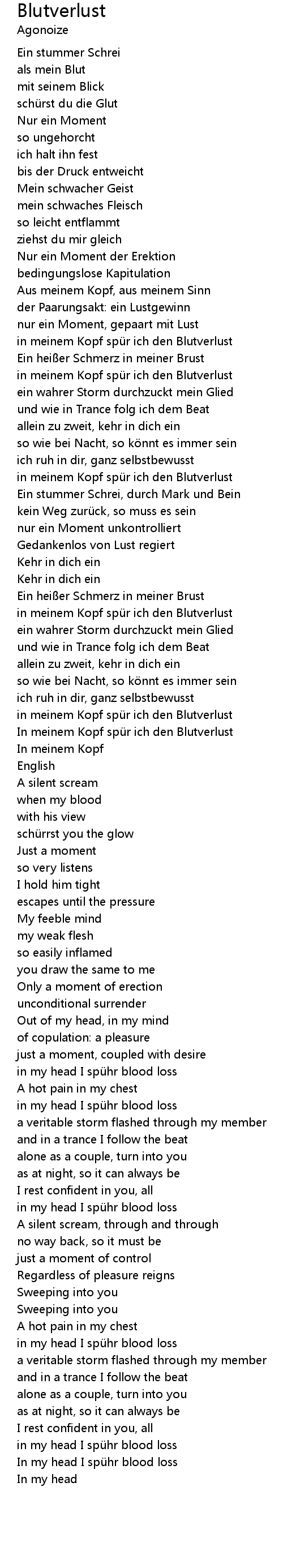| In meinem Kopf spü r ich den Blutverlust | |