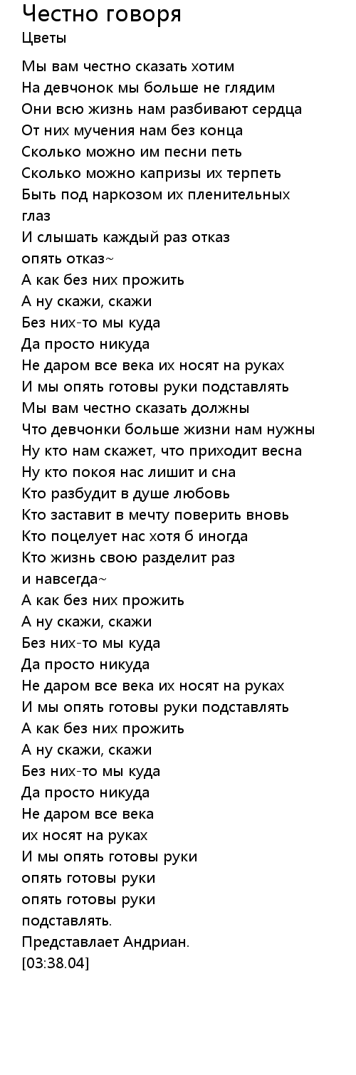 Честно говоря  Lyrics