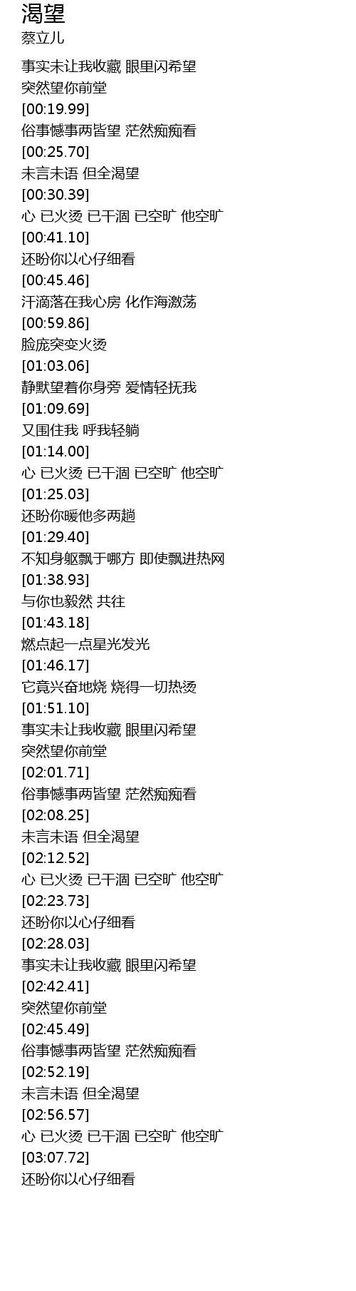 | [02:57.49] | 心 已火烫 已干涸 已空旷 他空旷 |