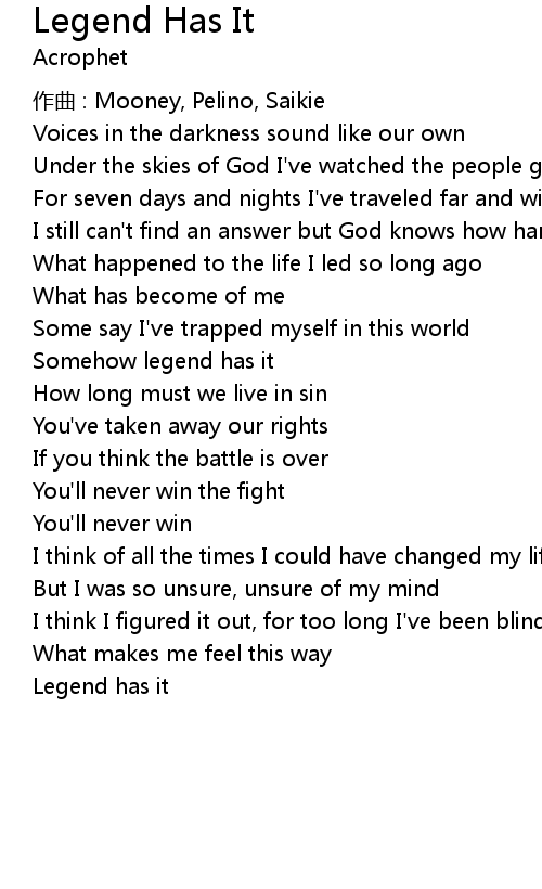 | Song | Legend Has It |