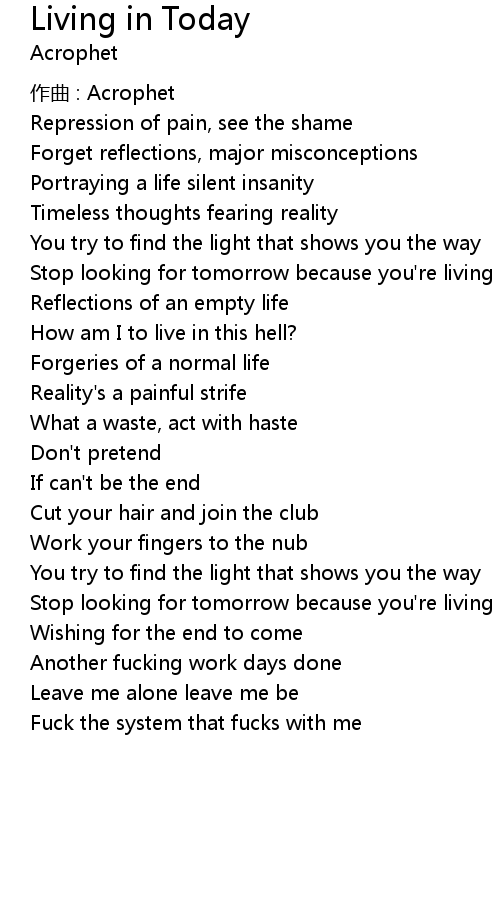 | Stop looking for tomorrow because you' re living in today | |