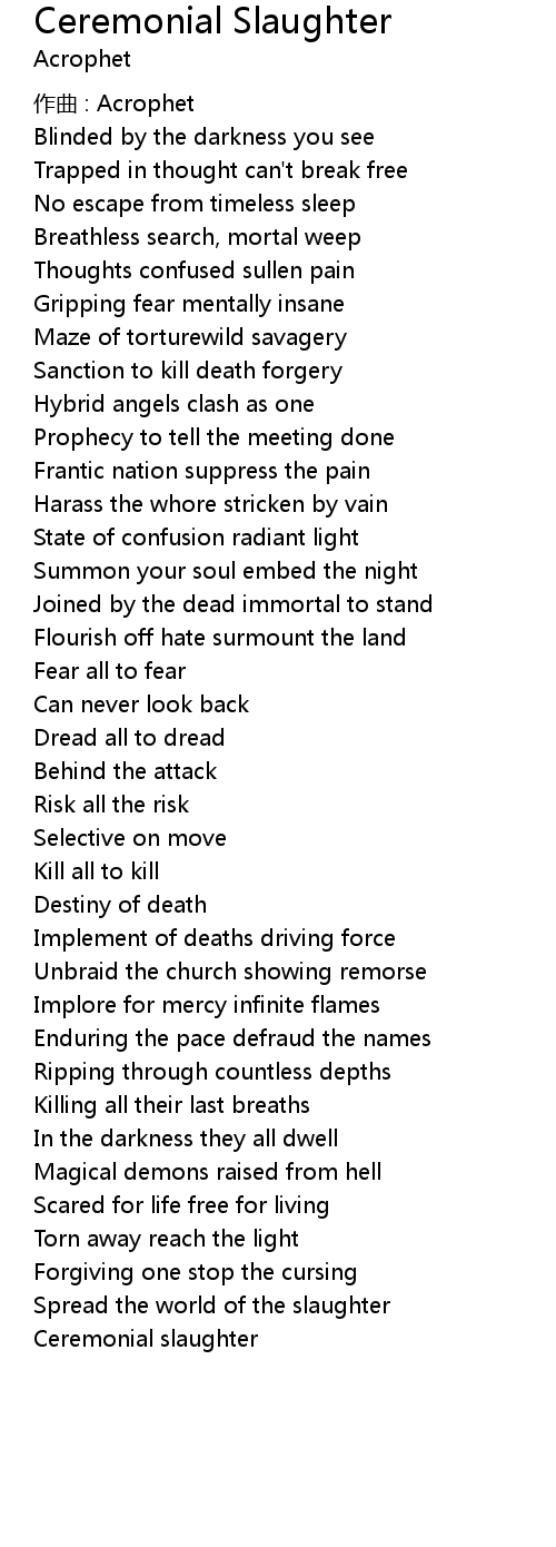 | Song | Ceremonial Slaughter |