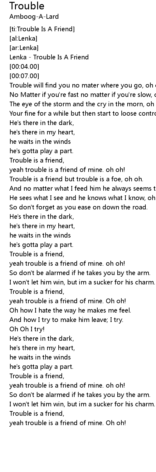 [ti:Trouble Is A Friend] |