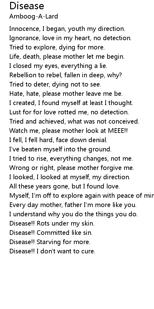 Disease!! Rots under my skin. |