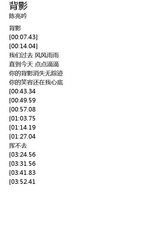 | [04:35.18][03:52.41][02:02.87] | 挥不去 你的背影 |