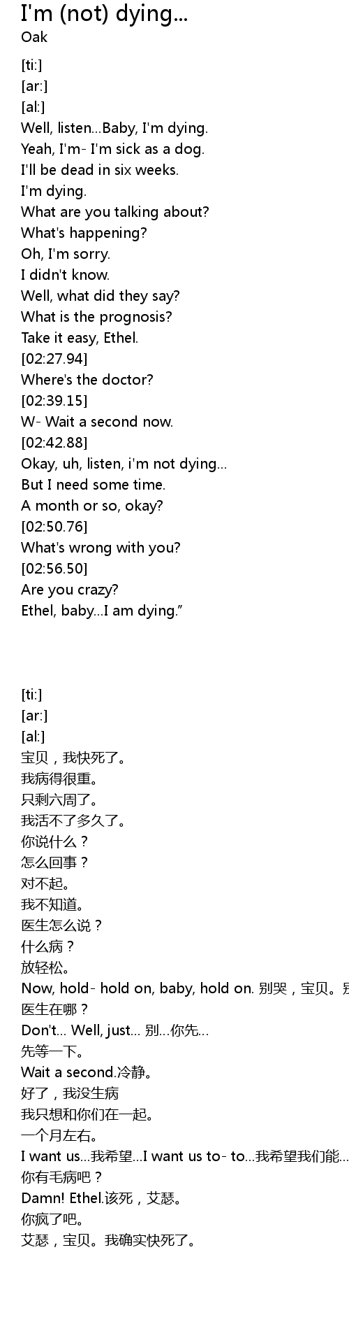 | [02:44.25] | Okay, uh, listen, i' m not dying... |