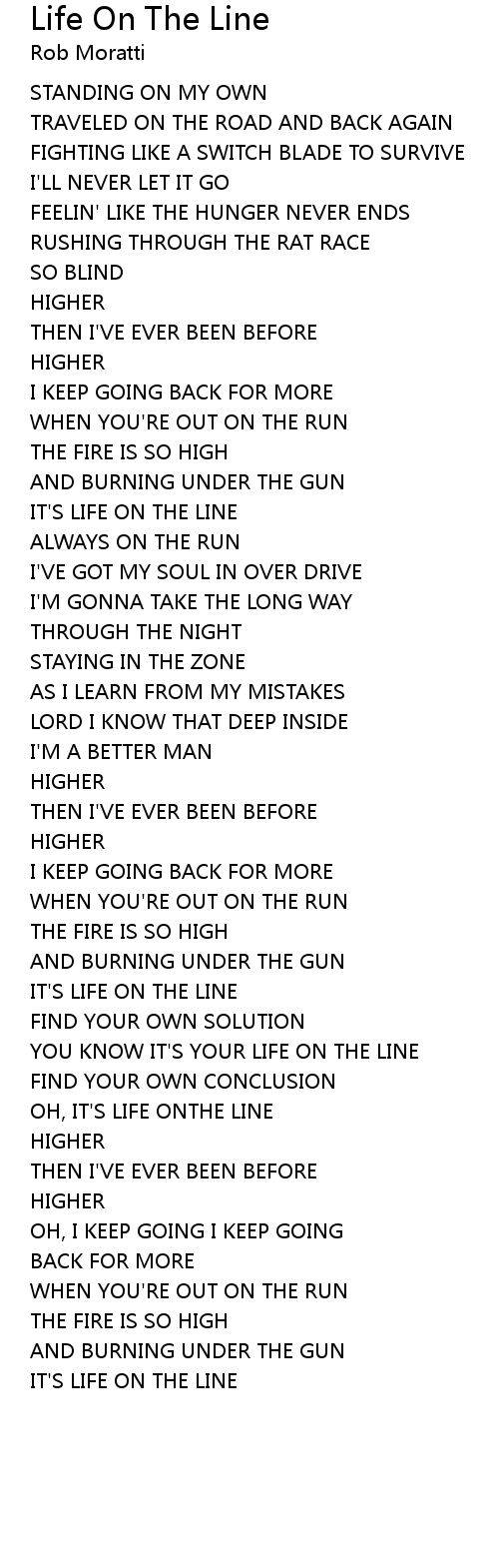 YOU KNOW IT'S YOUR LIFE ON THE LINE |